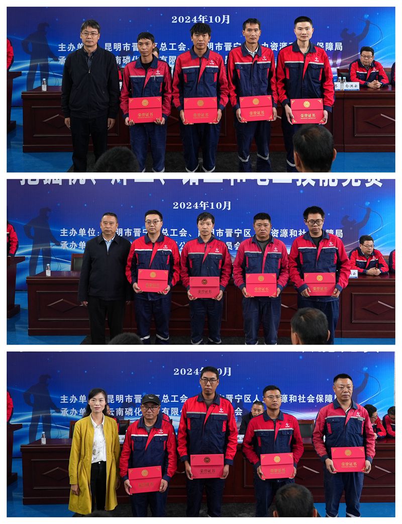經(jīng)過(guò)一天的激烈比拼,公司昆陽(yáng)磷礦職工郭林慶、檢維修中心職工沈君縣和楊強(qiáng)、尖山磷礦職工王正山以?xún)?yōu)異的實(shí)操成績(jī)分別奪得挖掘機(jī)、焊工、電工、鉗工技能競(jìng)賽冠軍,并被授予2024年晉寧區(qū)挖掘機(jī)、焊工、電工、鉗工技能競(jìng)賽“技術(shù)狀元”榮譽(yù)稱(chēng)號(hào)。